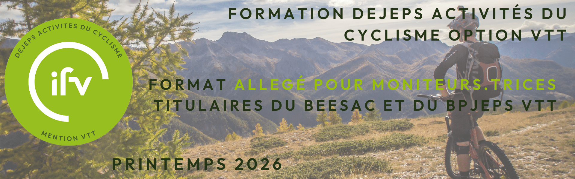 - Florian BOUTEILLER (directeur de l'IFV) : DEJEPS VTT, BPJEPS VTT, AMM CQC VTT, moniteur de secourisme et spécialiste des voyages à vélo et la sécurité/secours