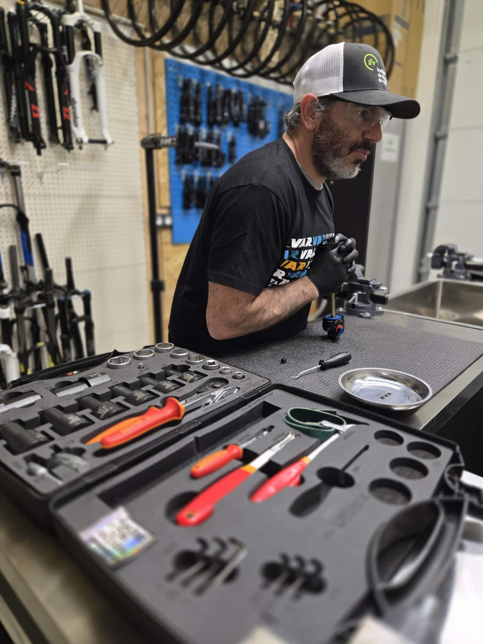 L'IFV fournit le poste de travail, les outils, les vélos/suspensions et les protections (tablier, gants). Vous devez venir avec des vêtements non amples et des chaussures fermées, ainsi que de quoi prendre des notes.