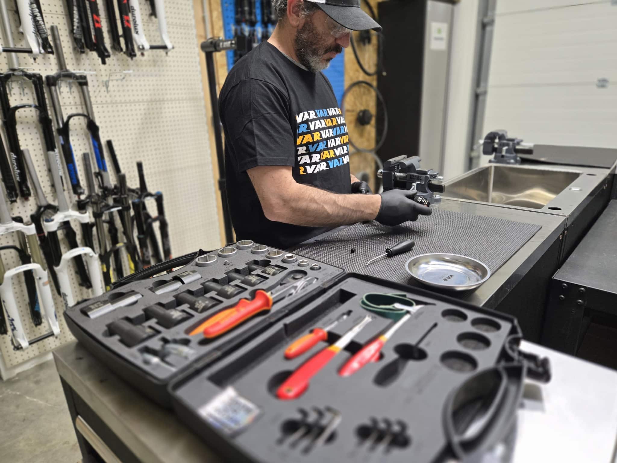 Il s'agit d'une formation multi-marques. Vous apprendrez les méthodes applicables aux principaux fabricants du marché, notamment FOX, Rock Shox et SR Suntour, ainsi que les tiges de selle type Reverb.