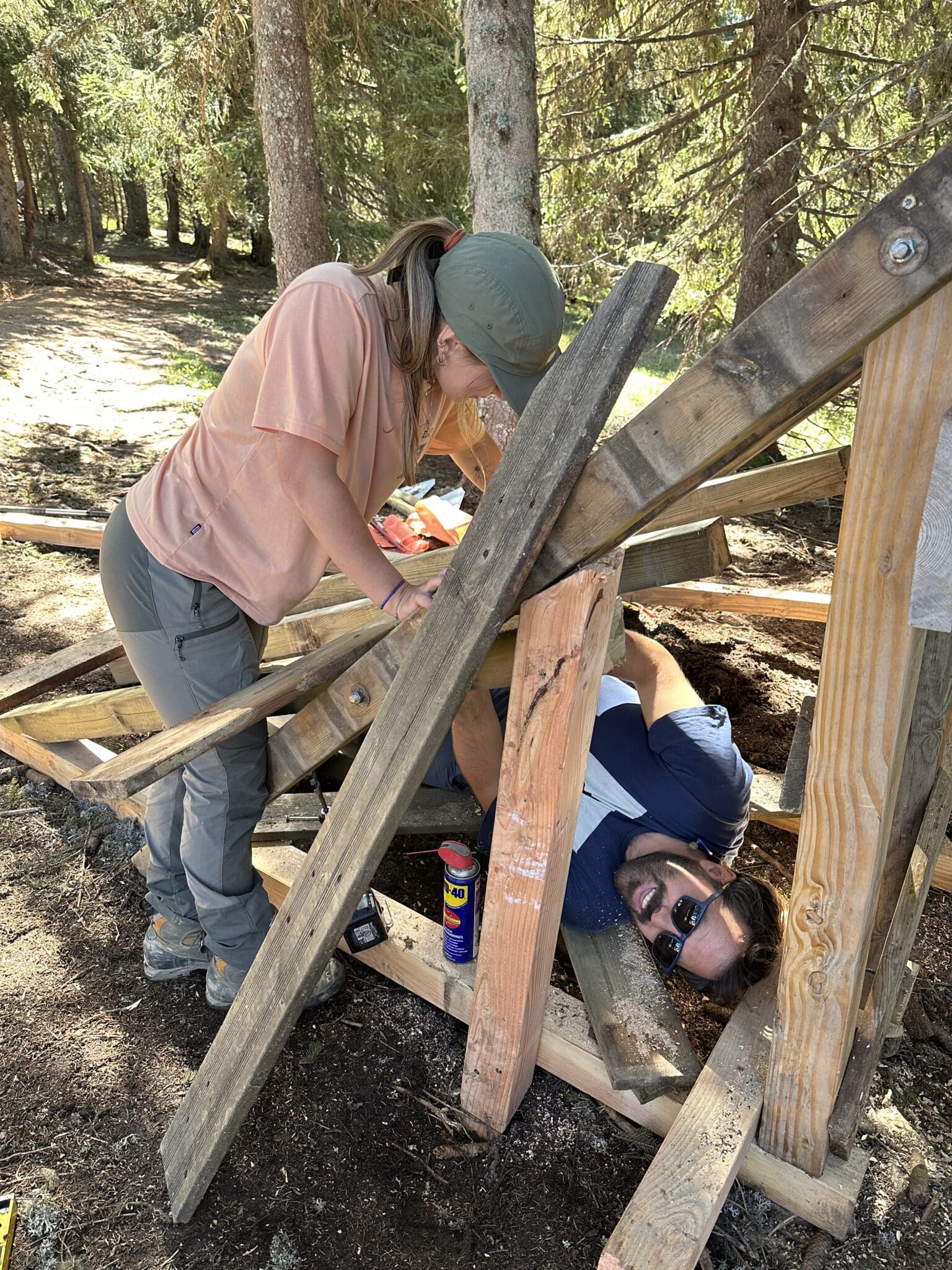 - Réaliser des aménagements en bois d'architecture simple et des aménagements en terre en guidant un conducteur d'engin
