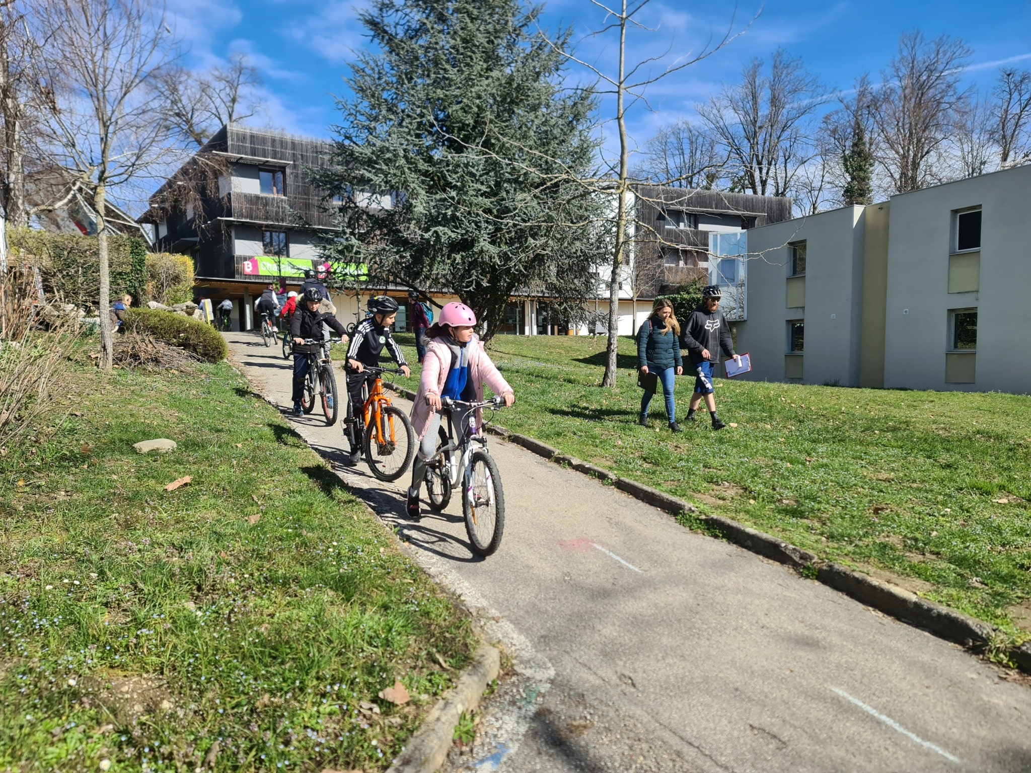Moyens à disposition : salle de cours avec vidéoprojecteur et tableau blanc, matériel pédagogique pour l'encadrement, kit pédagogique pour la mise en place d'un parcours routier (bloc 2) zone d'évolution en milieu fermé, parcours type de bloc 3 en milieu ouvert.