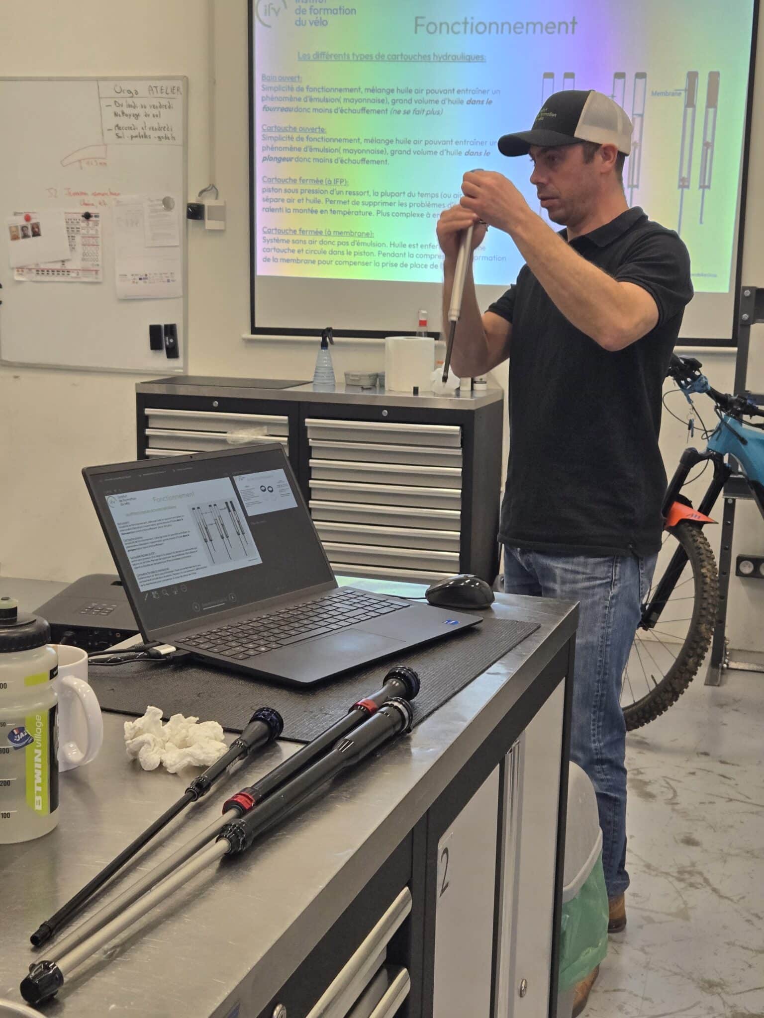 - Un tableau collectif composé des outils spécifiques est disponible (démonte pédaliers, roues libres, clé à griffes, fouet chaînes, presse cuvettes…).