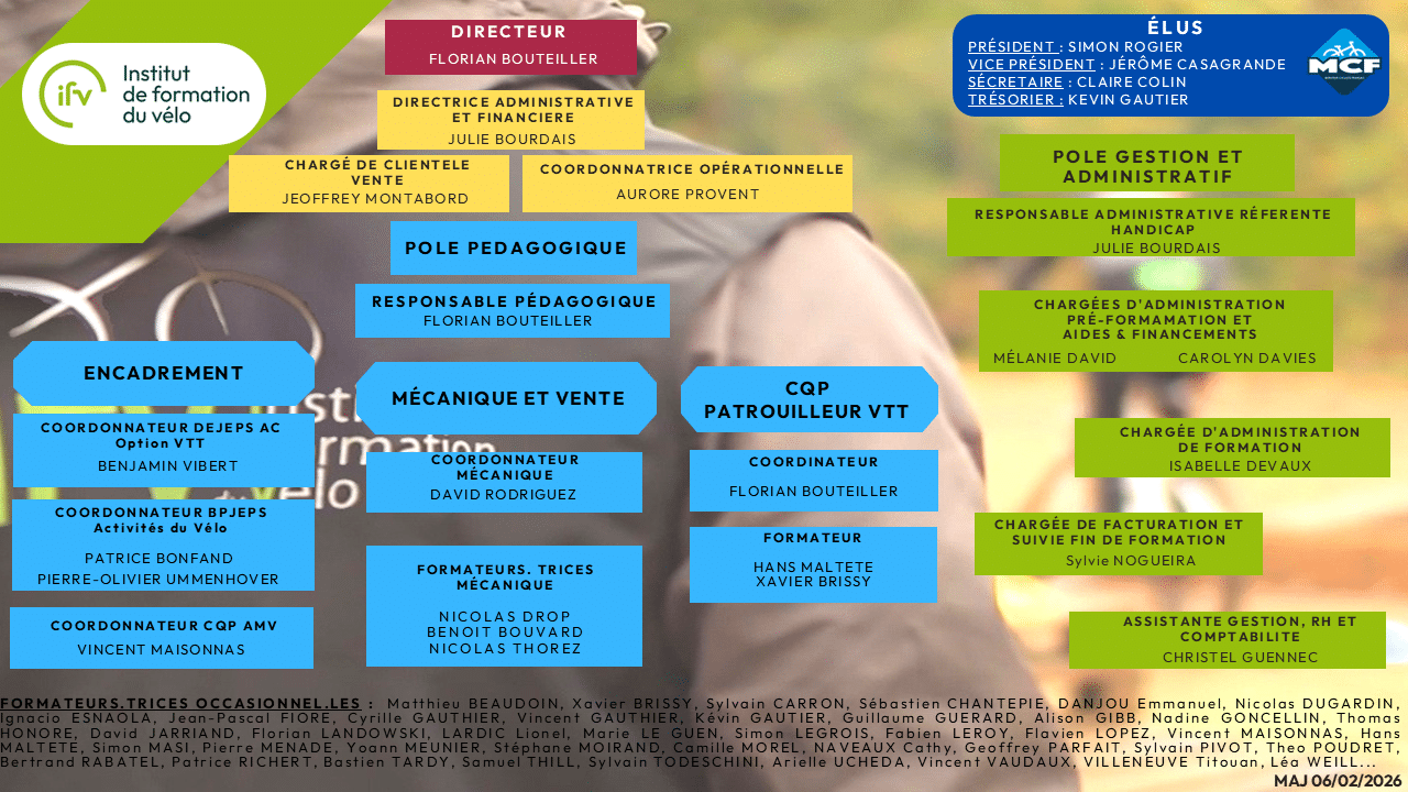 L’Institut de Formation du Vélo fait appel aux compétences pédagogiques des professionnels en exercice référents dans leur domaine.