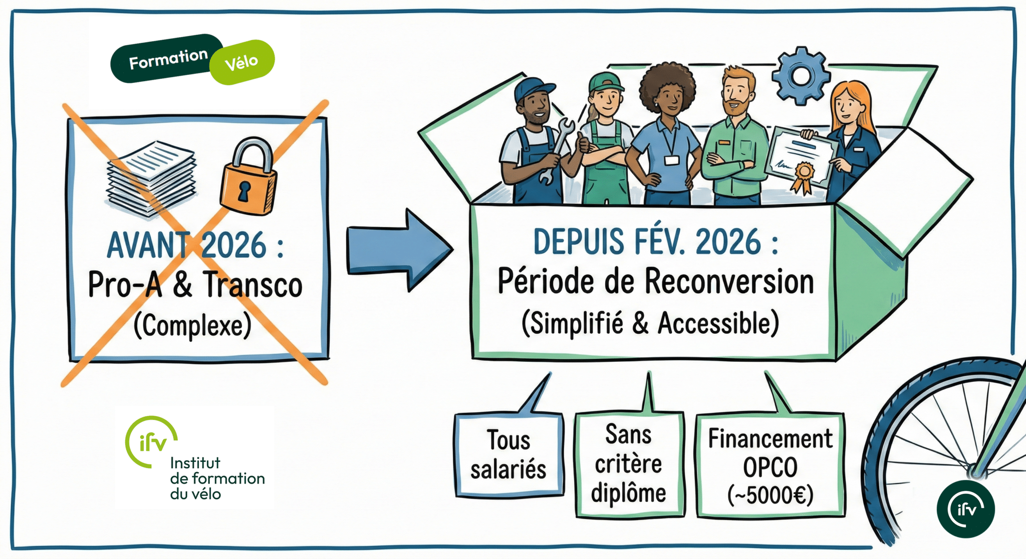 L’avis de l’IFV : Cette réforme est une excellente nouvelle pour la filière vélo. Elle permet de fluidifier les reconversions internes, par exemple pour passer d’un poste administratif à celui de moniteur ou technicien spécialisé.